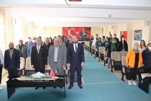 18 Mart Şehitleri Anma günü münasebetiyle, Atatüe katıldıkk Mesleki ve Teknik Anadolu Lisesi idarecileri, öğretmen ve öğrencileri tarafından hazırlanan "Çanakkale" temalı tiyatro gösterimi